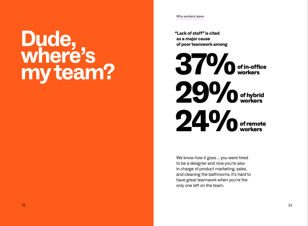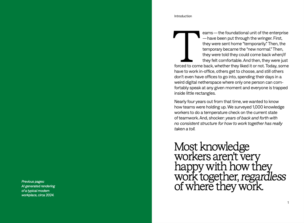 • An engaging, insightful research report about the state of teamwork that we printed as a takeaway book, handed out to thousands of customer and prospects at events and sales meetings